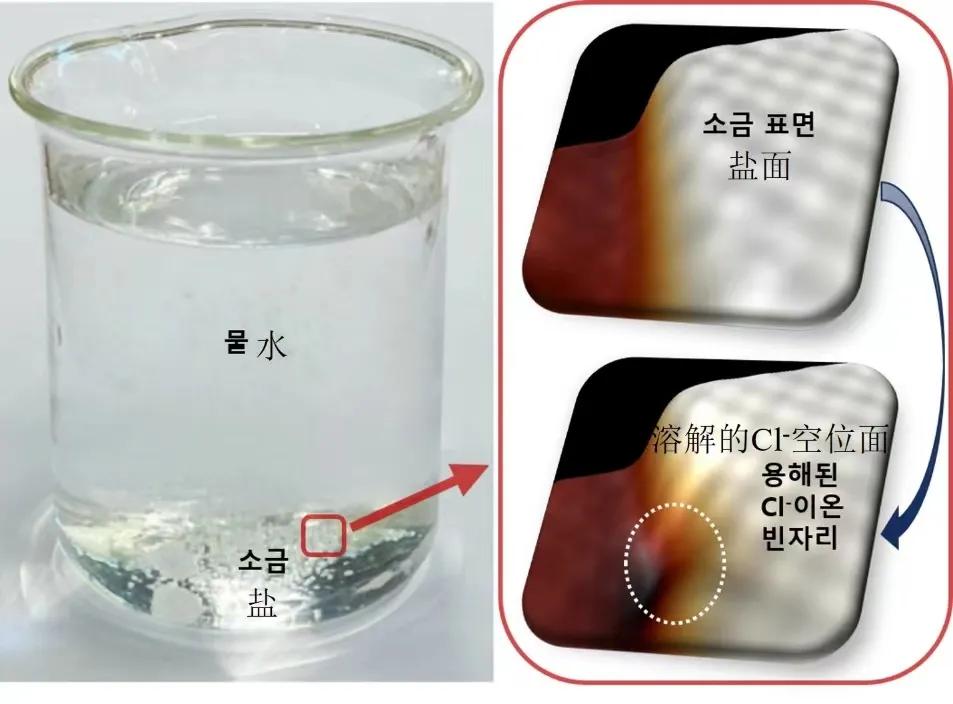 為了解決這一難題,丁峰、Shin Hyung-jun研究團隊在極低溫度(-268.8℃)下,將單個水分子沉積在僅有2到3個原子厚度的薄鹽膜上,利用具有原子級分辨率的掃描隧道顯微鏡(STM實現(xiàn)了精確控制水分子移動,并觀察到了食鹽中單個氯離子(Cl-)的溶解過程。