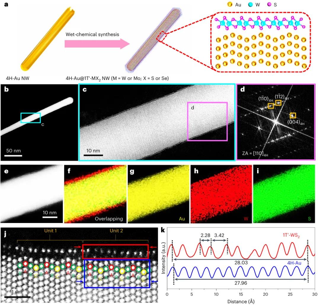 圖1為4H-Au@1T’-WS2合成和結構表征。