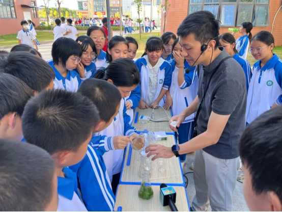 2022年,USIAT攜手美的樓宇科技、中華兒慈會科技筑夢專項基金,帶著來自數(shù)字所、碳中和所、集成所、醫(yī)藥所、腦所、材料所的博士老師走進鄉(xiāng)村學(xué)??破站G色科技知識。以“流動的綠盒子”為創(chuàng)新性移動課堂為載體,精心打造了一系列關(guān)于“科技”、“綠色”的課堂,在鄉(xiāng)村孩子們心中種下一顆“綠色發(fā)展”的種子。