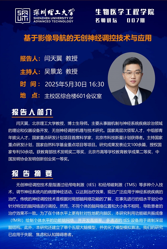 生物醫(yī)學(xué)工程學(xué)院--名師講壇--基于影像導(dǎo)航的無(wú)創(chuàng)神經(jīng)調(diào)控技術(shù)與應(yīng)用