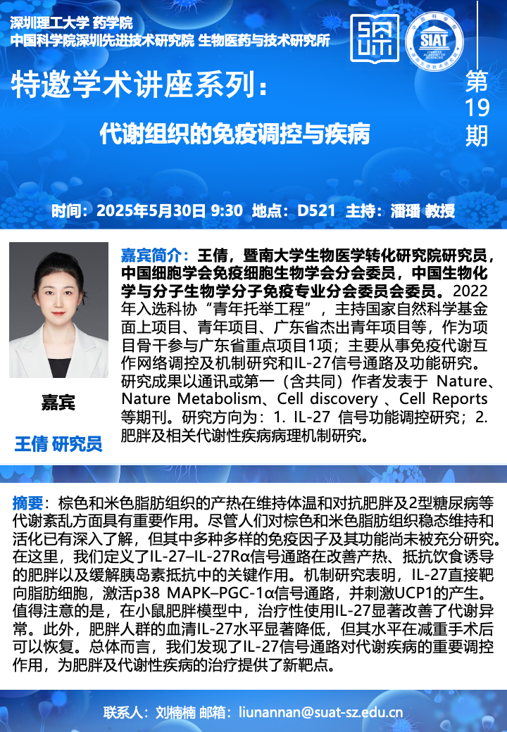 藥學(xué)院--學(xué)術(shù)講座--代謝組織的免疫調(diào)控與疾病