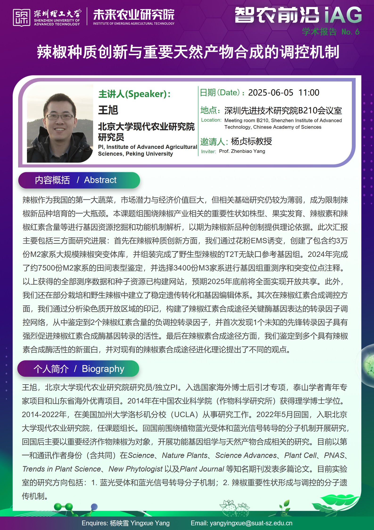 未來農(nóng)業(yè)研究院--學術(shù)講座--辣椒種質(zhì)創(chuàng)新與重要天然產(chǎn)物合成的調(diào)控機制